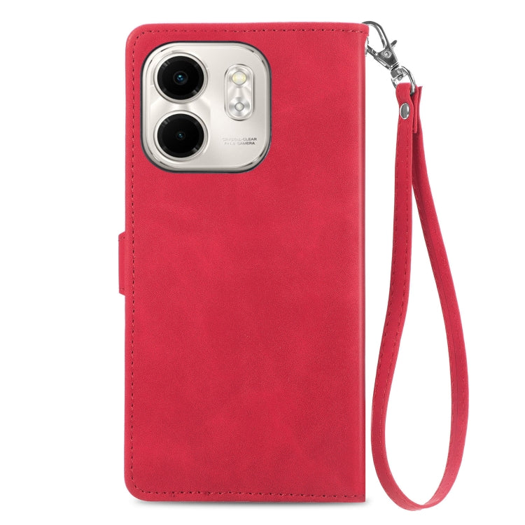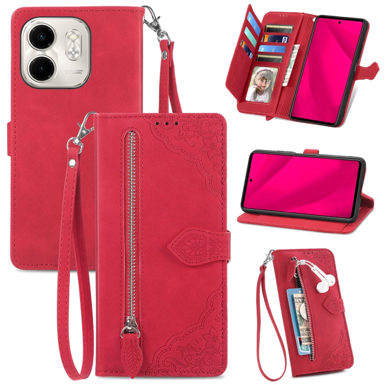 Funda de Cuero con Cremallera y Flores En Relieve para Infinix Smart 9 (Rojo)