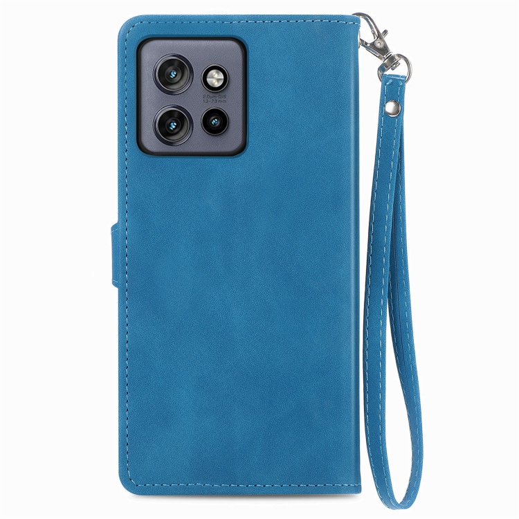 Funda de Cuero con Cremallera y Flores en Relieve para Motorola Moto S50 (Azul)