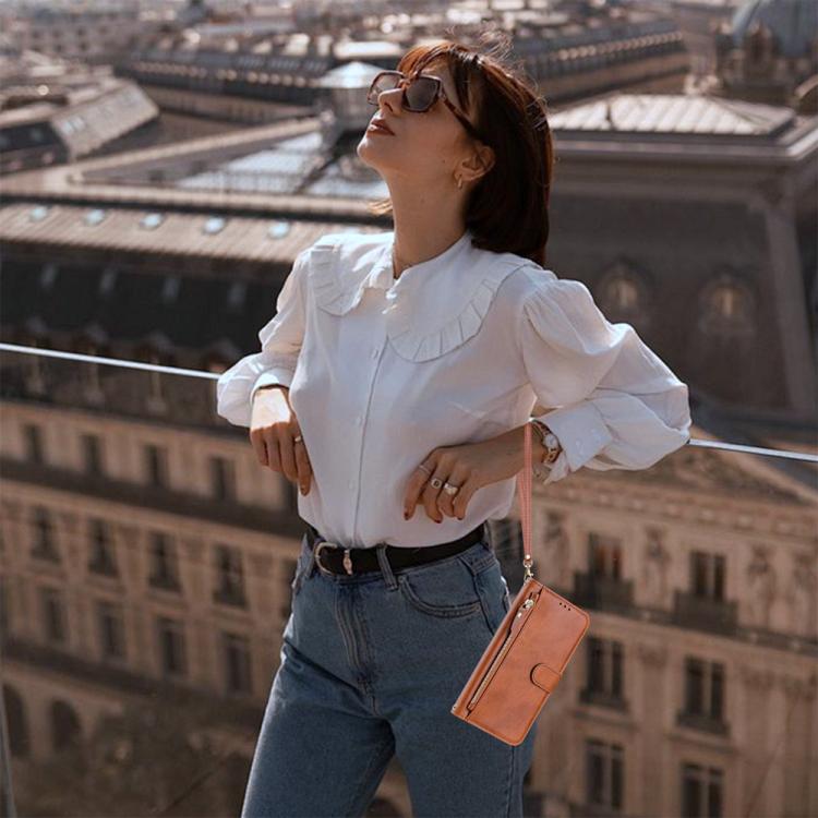 Funda de cuero con cremallera y ranuras para múltiples tarjetas para TCL 605 / TCL 60 SE (marrón)