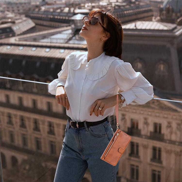 Funda de cuero con cremallera y ranuras para múltiples tarjetas para Xiaomi 15T Pro (marrón)