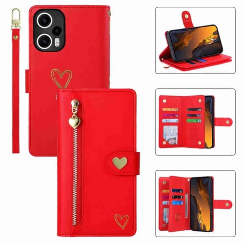 Funda de Cuero con Cremallera y Ranuras para Varias Tarjetas para Xiaomi Poco F5 Pola Love (Rojo)