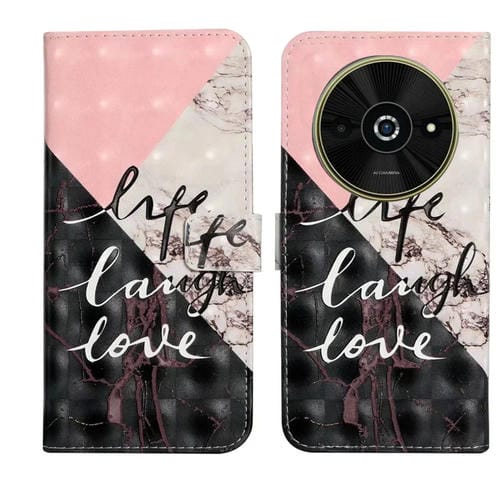 Funda de Cuero con Dibujo 3D En Relieve de Aceite para Xiaomi Poco C61 (Costura de Mármol)