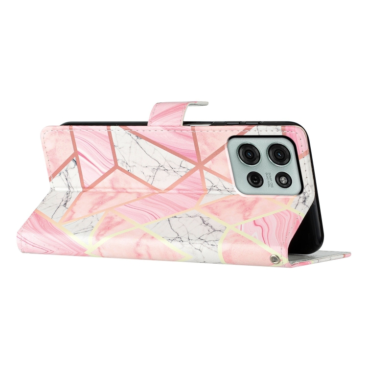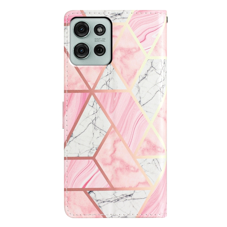 Funda de Cuero Motorola Moto G75 5G con Dibujo de Colores (Mármol Rosa)