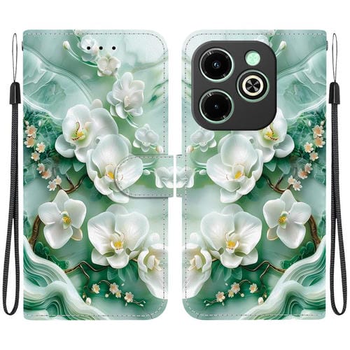 Funda de Cuero con Dibujo y Textura de Cristal para Infinix Smart 8/HD/Hot 40I (Flores de Jade)