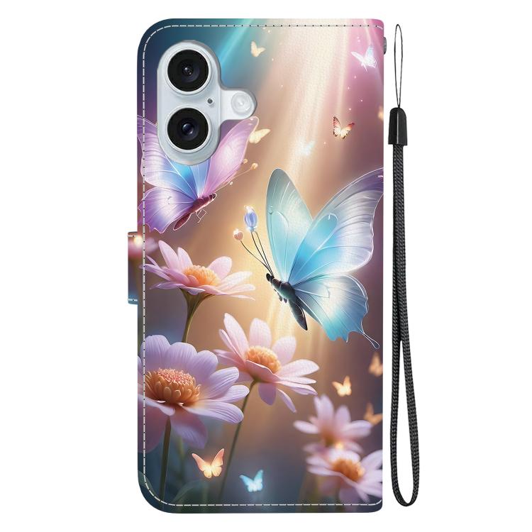 Funda de Cuero iPhone 16 Dibujo Colores Textura Cristal (Mariposa Amor Flores)