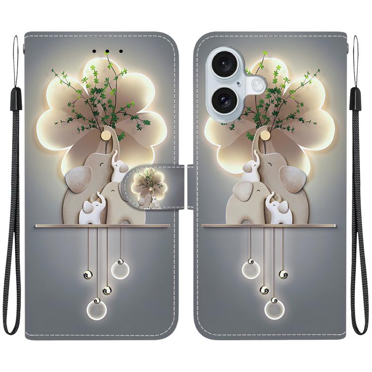 Funda de Cuero para iPhone 16 con Dibujo de Colores y Textura de Cristal (Tres Ciervos)