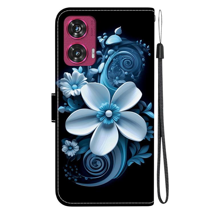 Funda de Cuero Motorola Edge 50 Fusion con Dibujo de Colores y Textura de Cristal (Orquídea Negra)