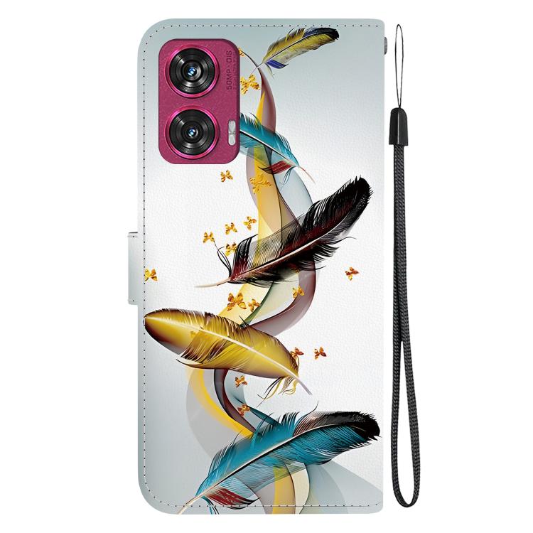 Funda de Cuero con Dibujo y Textura de Cristal para Motorola Edge 50 Fusion (Plumas Doradas)