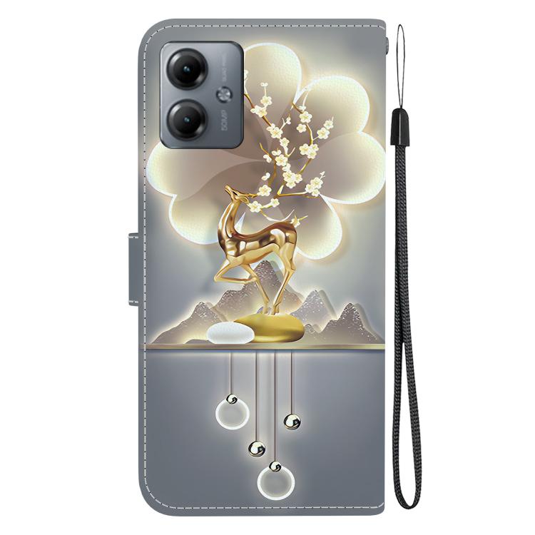 Funda de Cuero Motorola Moto G14 con Dibujo de Colores y Textura de Cristal (Ciervo Sika)