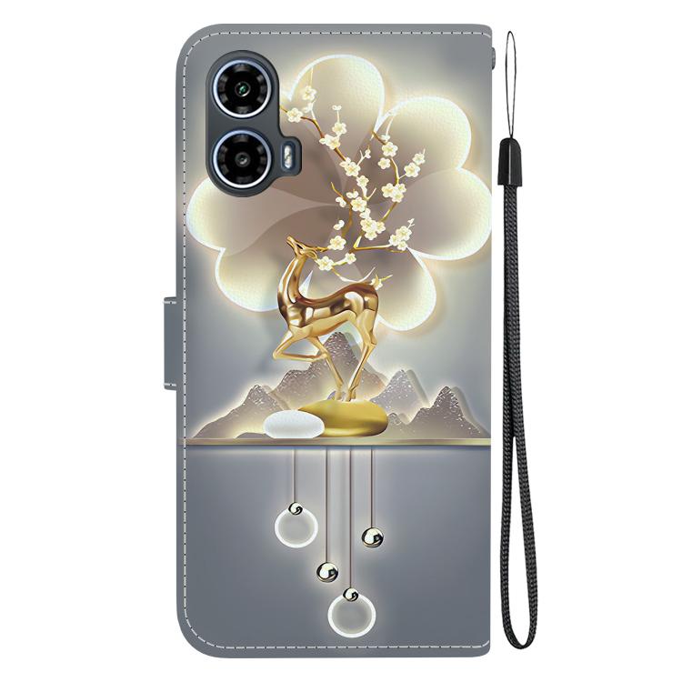 Funda de Cuero Motorola Moto G34 5G con Dibujo de Colores y Textura de Cristal (Ciervo Sika)