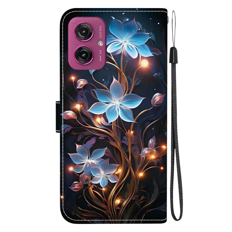 Funda de Cuero Motorola Moto G55 con Dibujo de Colores y Textura de Cristal (Flor de Linterna Pequeña)
