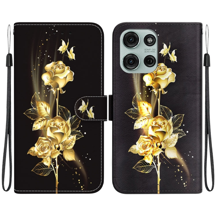 Funda de Cuero para Motorola Moto G75 5G con Dibujo de Colores y Textura de Cristal (Mariposa Dorada y Rosa)