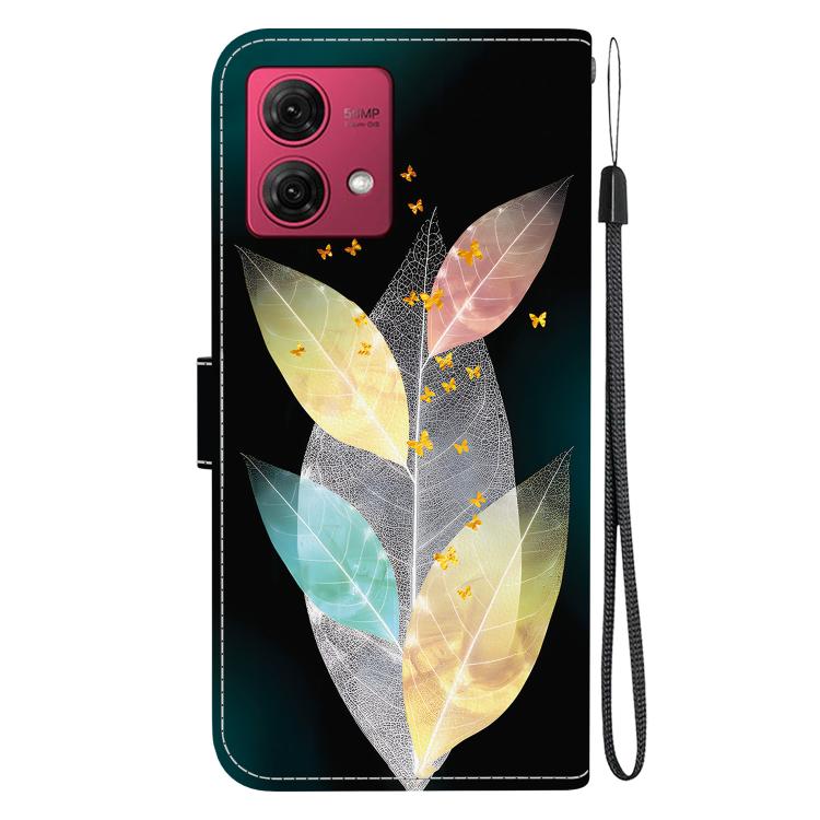 Funda de Cuero para Motorola Moto G84 con Dibujo y Textura de Cristal (Hojas de Colores)