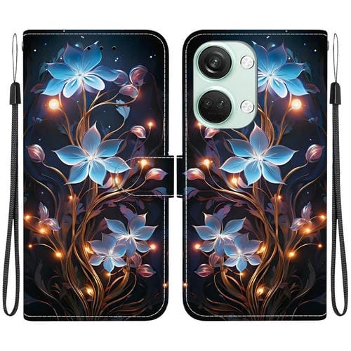 Funda de Cuero OnePlus Ace 2V 5G Nord 3 con Dibujo y Textura de Cristal (Flor de Linterna Pequeña)