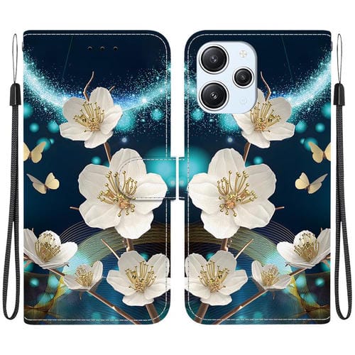 Funda de Cuero con Dibujo de Colores y Textura de Cristal para Redmi 12 4G/5G/Poco M6 Pro (Magnolia)