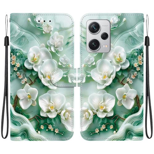 Funda de Cuero con Dibujo de Colores y Textura de Cristal para Redmi Note 12 Pro+ 5G (Flores de Jade)