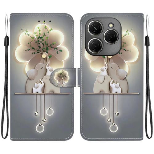Funda de Cuero para Tecno Spark 20 Pro con Dibujo de Colores y Textura de Cristal (Elefantes)