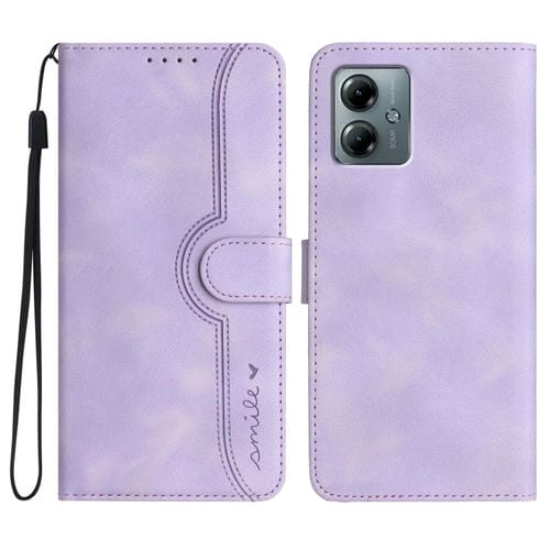 Funda de Cuero con Diseño de Corazón para Motorola Moto G Play 2025 y G Power 2025 (Morado)
