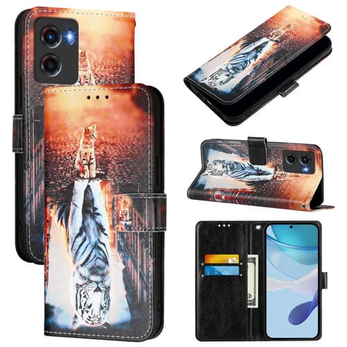 Funda de Cuero para Motorola Moto G05 Diseño de Gatos y Tigres Color Liso
