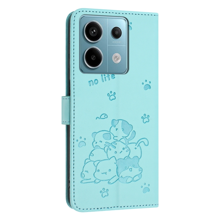 Funda de Cuero con Estampado de Gatito y Cordón para Redmi Note 13 Pro 5G (Verde Menta)