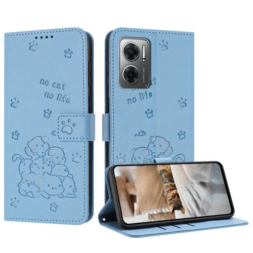 Funda de Piel con Diseño de Gatito En Relieve y Cordón para Redmi 10 5G/Note 11E 5G (Azul)