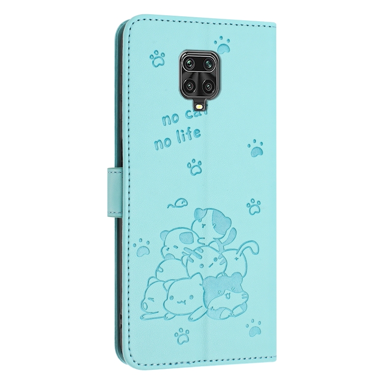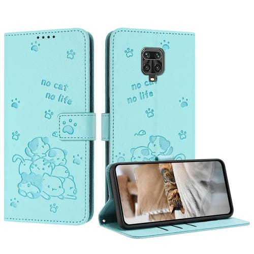 Funda de Piel con Diseño de Gatito En Relieve para Redmi Note 10 Lite con Cordón (Verde Menta)