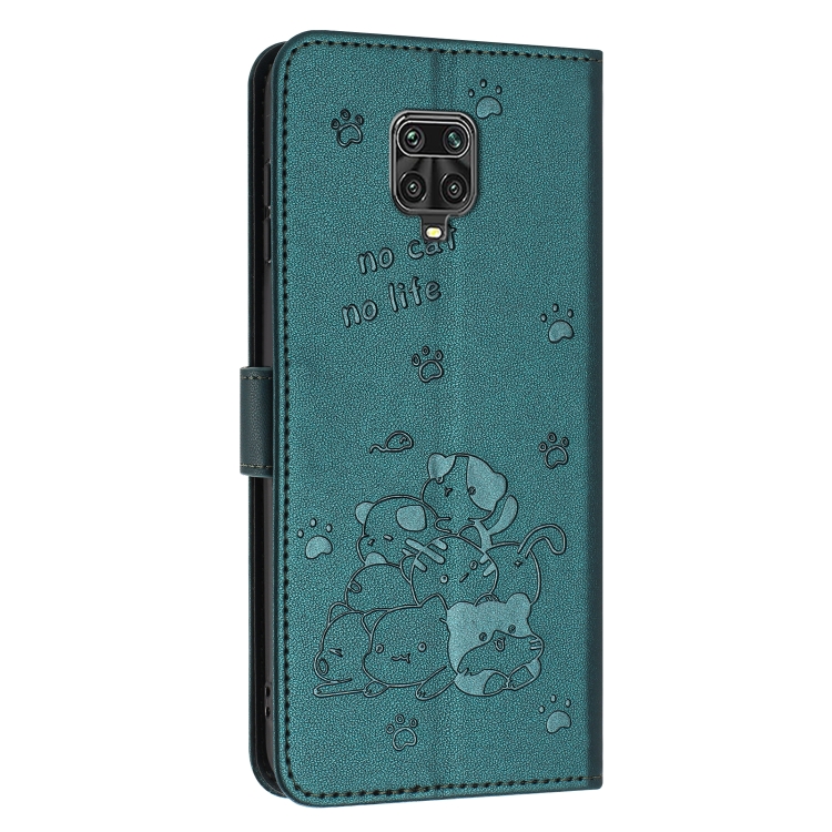 Funda de Piel con Diseño de Gatito En Relieve para Redmi Note 10 Lite con Cordón (Verde Oscuro)