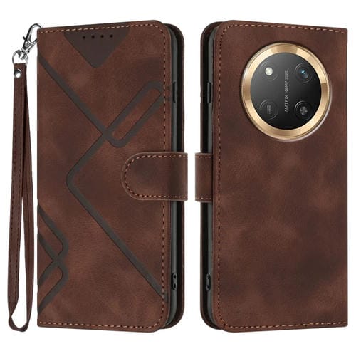 Funda de Cuero para Honor X9C con Diseño de Líneas Globales (Café)