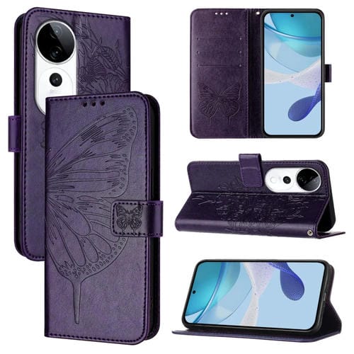 Funda de Cuero con Diseño de Mariposa En Relieve para El Teléfono Vivo S19 Pro (Morado Oscuro)