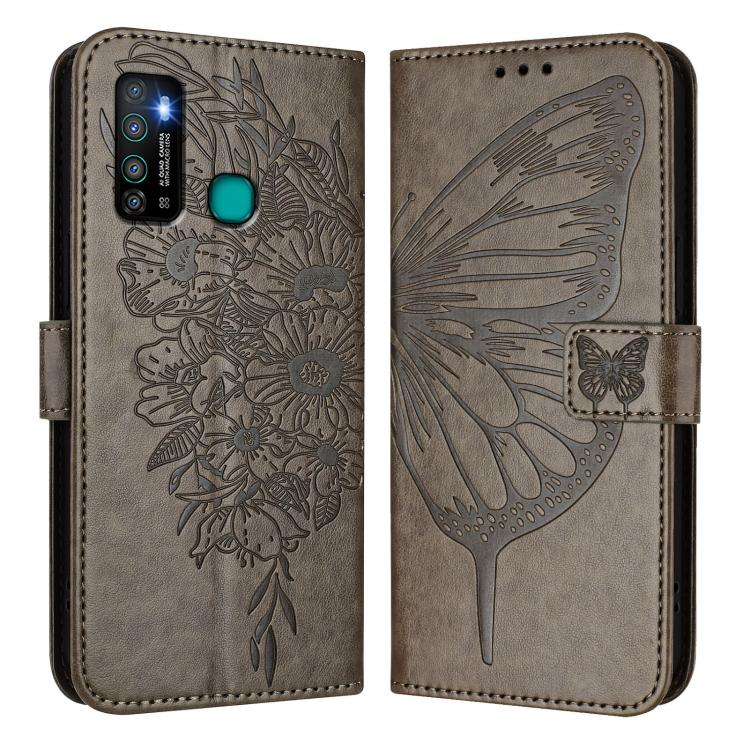 Funda de Cuero para Infinix Hot 9/9 Pro con Diseño de Mariposa en Relieve (Gris)