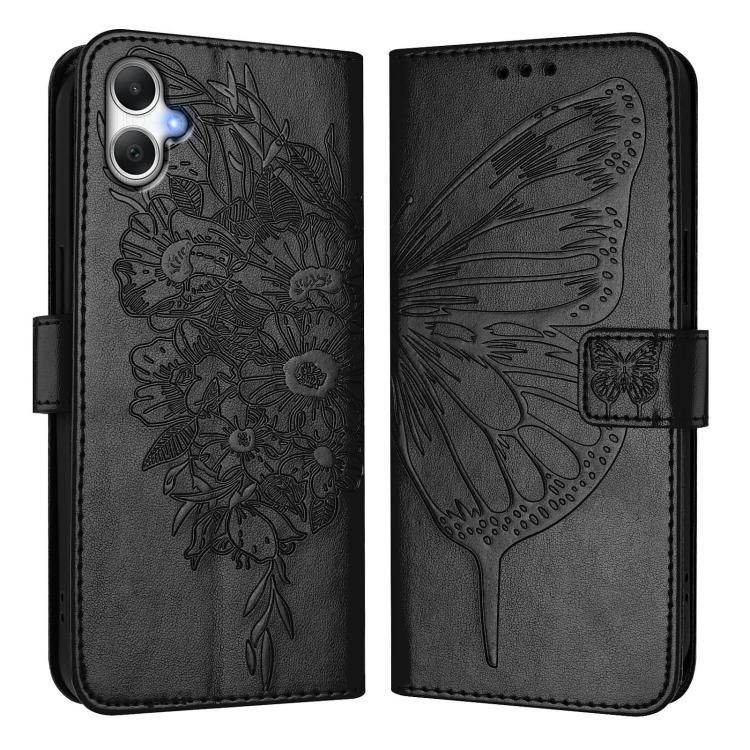 Funda de Cuero Samsung Galaxy A06 4G/5G Diseño Mariposa En Relieve (Negra)
