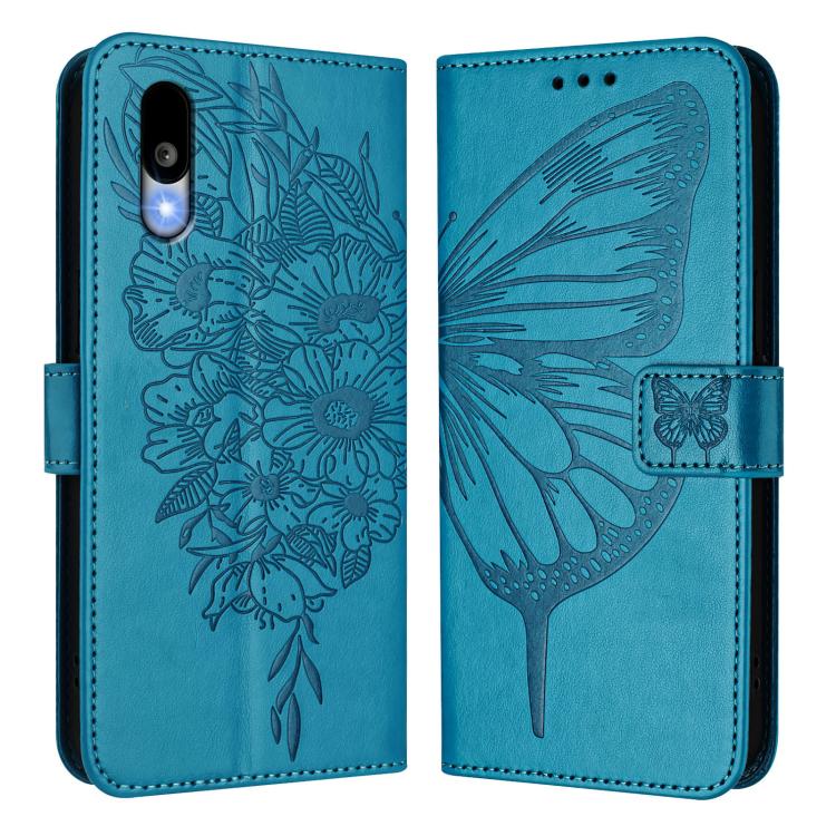 Funda de Cuero para Sharp Basio Active3 con Diseño de Mariposa En Relieve (Azul)