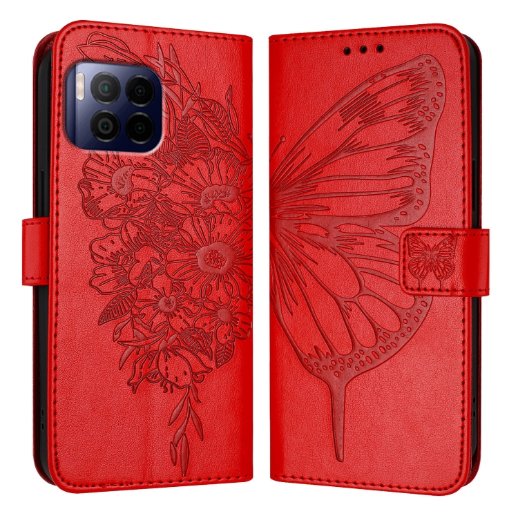 Funda de Cuero para T-Mobile Revvl 7 Pro 5G con Diseño de Mariposa en Relieve (Roja)