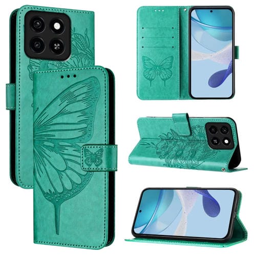 Funda de Cuero para ZTE Blade A35/A55 con Diseño de Mariposa en Relieve (Verde)