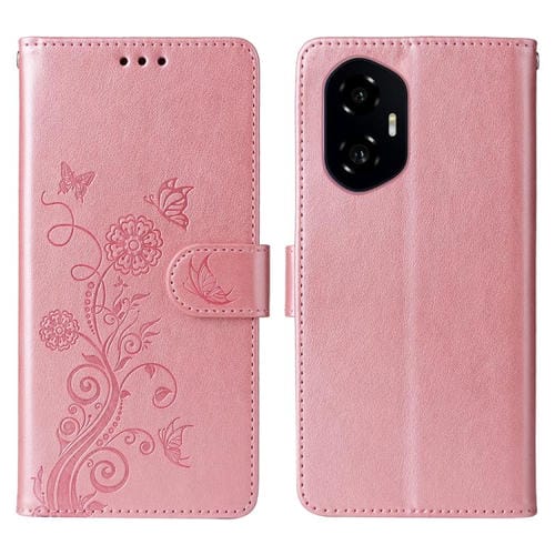 Funda de Cuero Honor 300 con Diseño de Mariposas y Flores en Relieve (Oro Rosa)