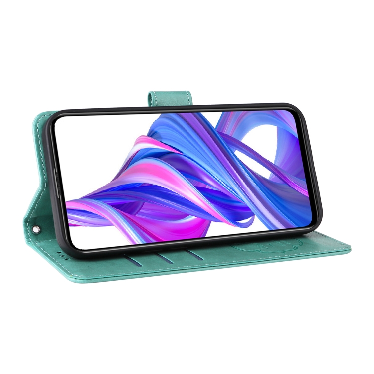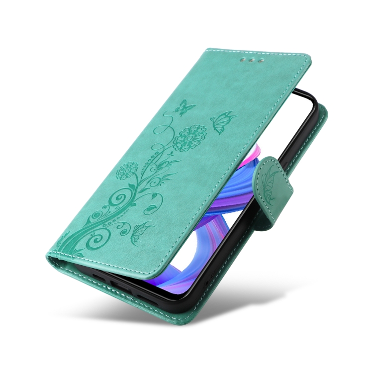 Funda de Cuero para Honor Magic4 Lite 5G/4G/X40 GT con Diseño de Mariposas y Flores en Relieve (Verde)