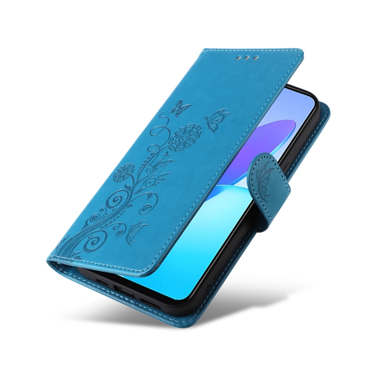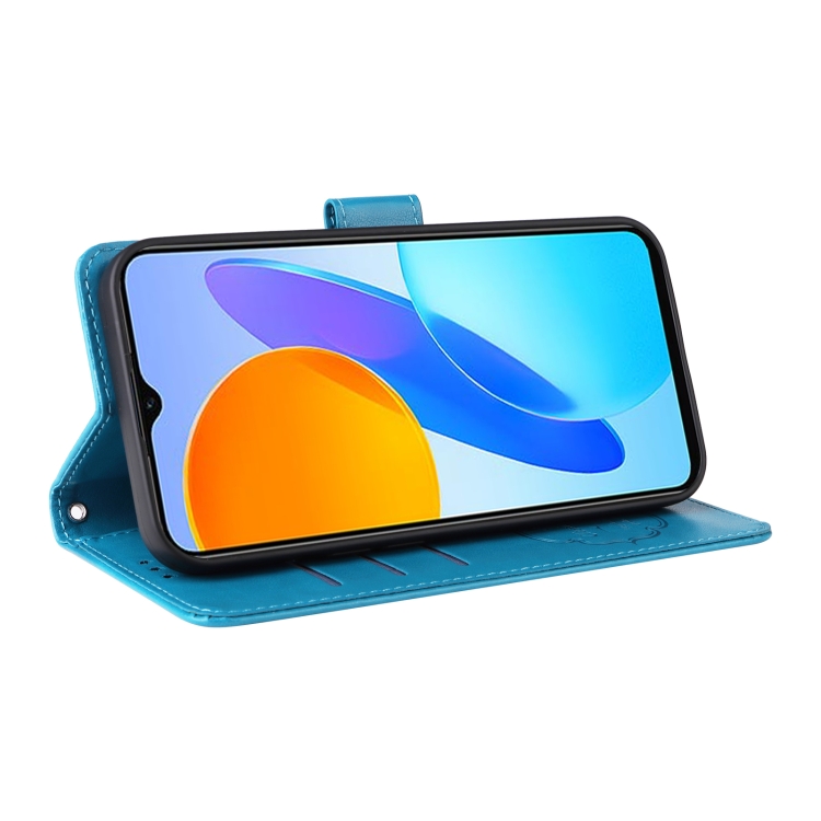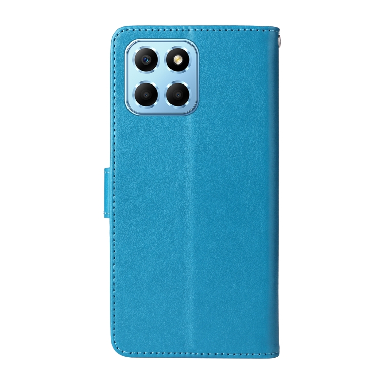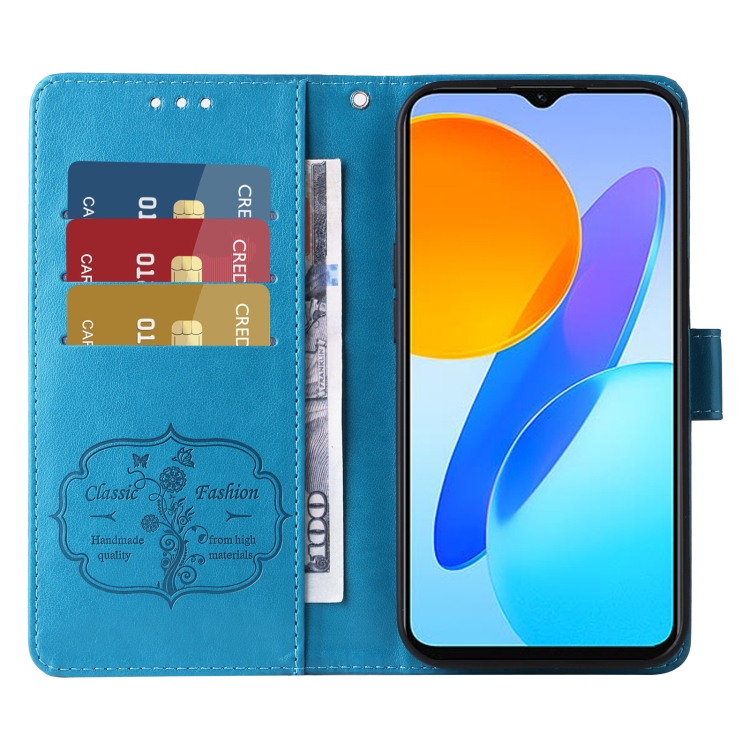 Funda de Cuero para Honor Play 6C/X6S/70 Lite con Diseño de Mariposas y Flores en Relieve (Azul)