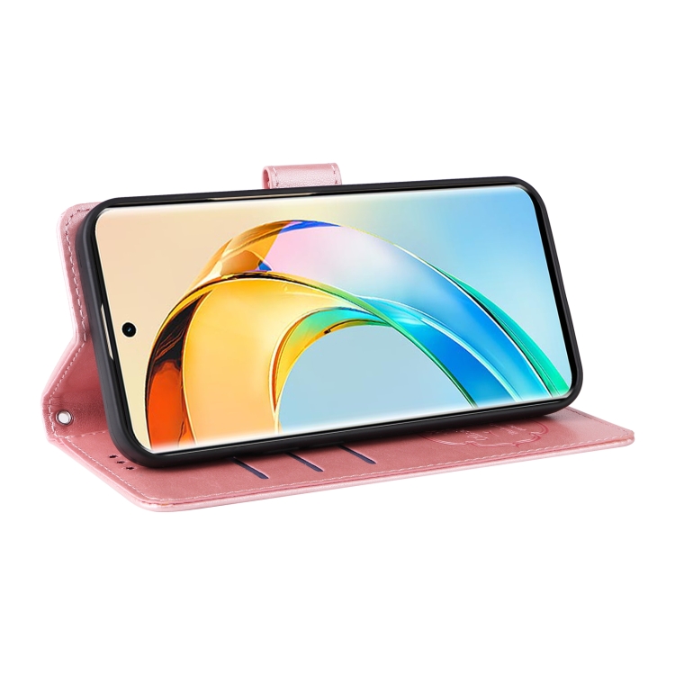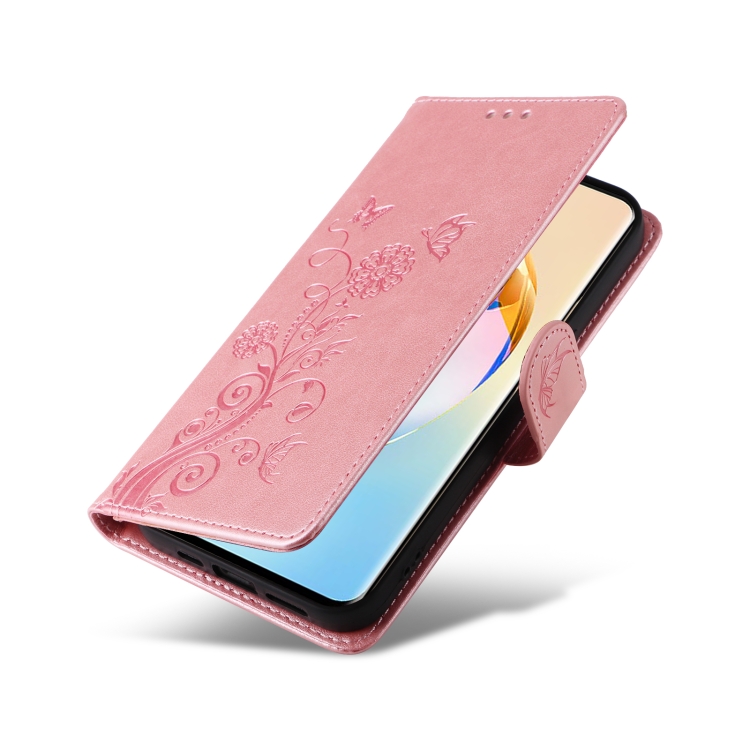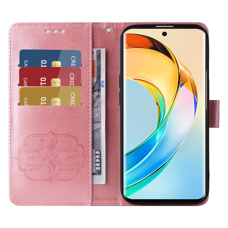 Funda de Cuero para Honor X50 GT y X50 Pro con Diseño de Mariposas y Flores en Relieve (Oro Rosa)
