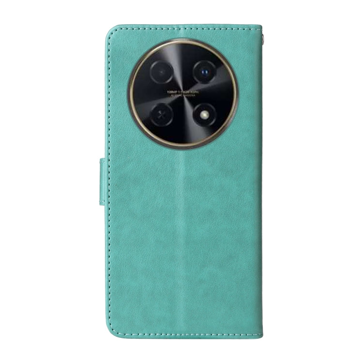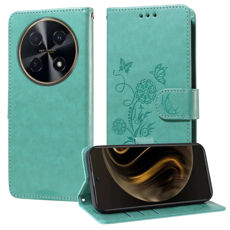 Funda de Cuero Huawei Enjoy 70 Pro 4G Nova 12I con Diseño de Mariposas y Flores en Relieve (Verde)
