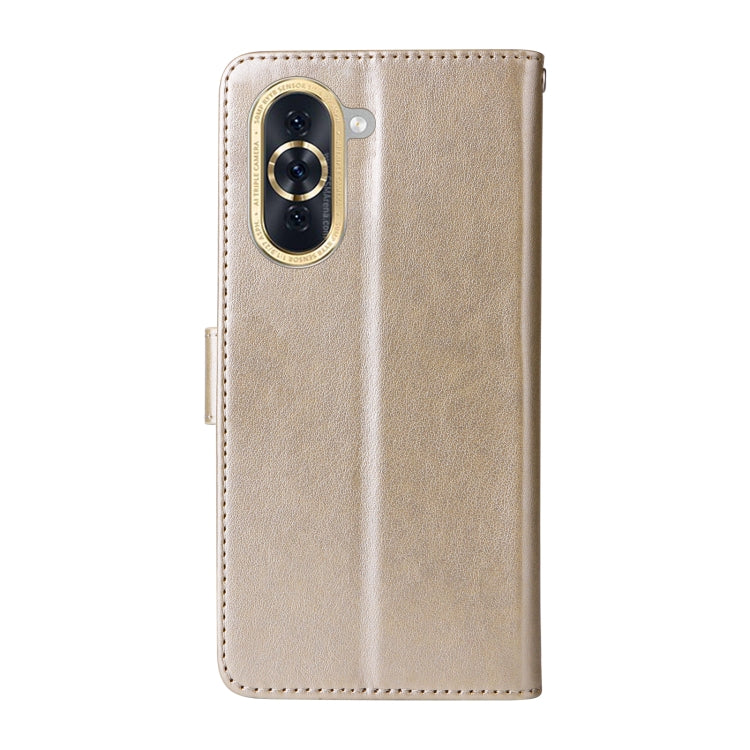Funda de Cuero Huawei Nova 10 con Diseño de Mariposas y Flores en Relieve (Dorada)