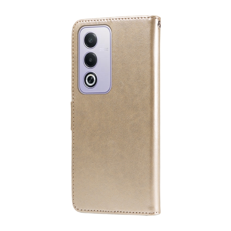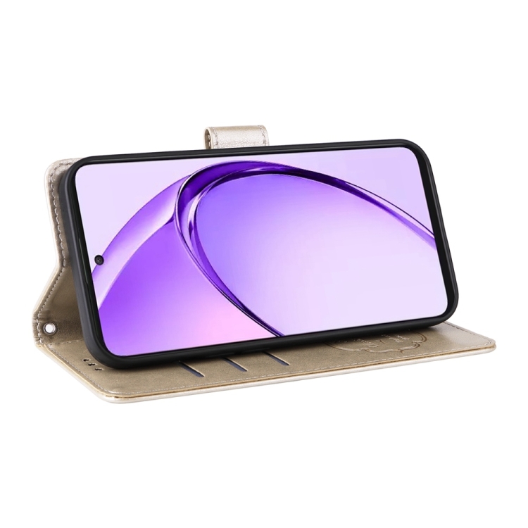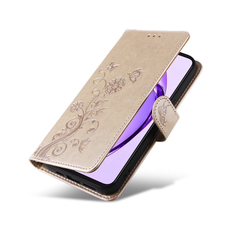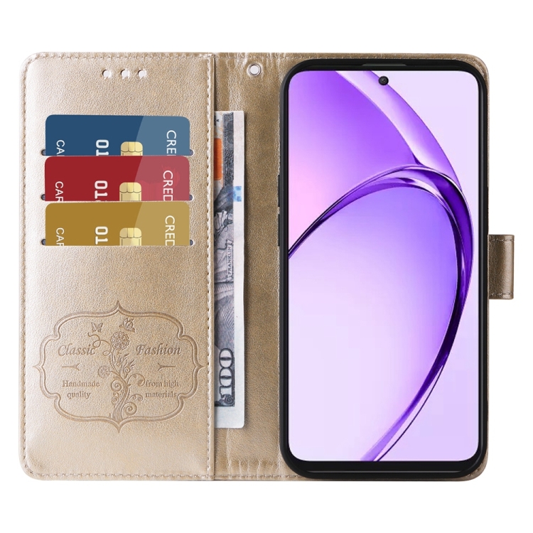 Funda de Cuero con Diseño de Mariposas y Flores En Relieve para Oppo A3 Pro 5G Global/India (Dorada)