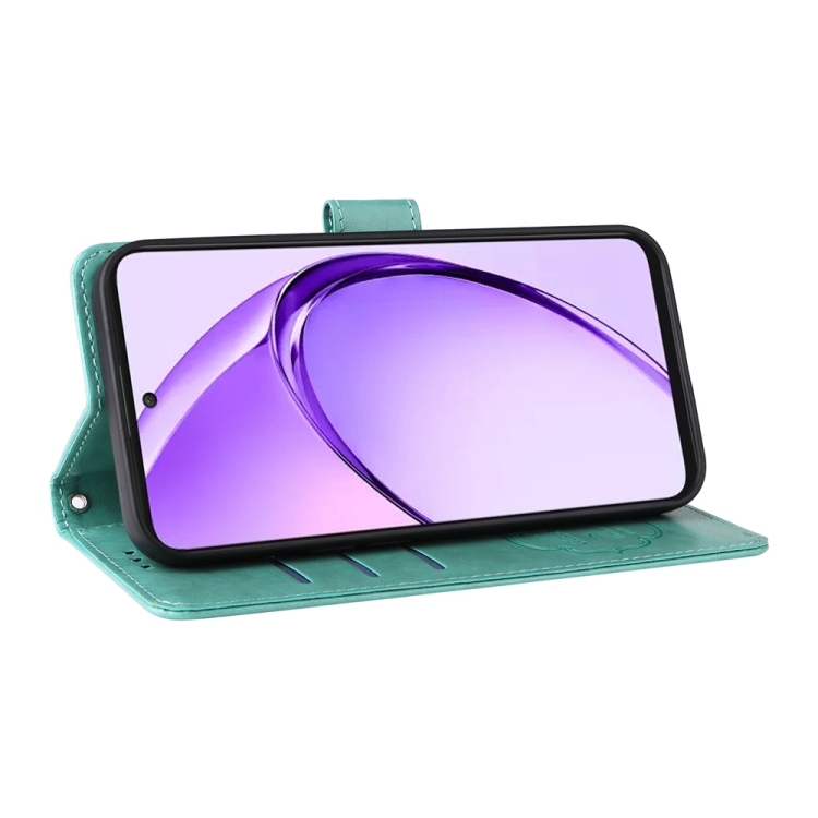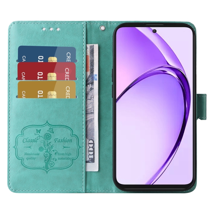 Funda de Cuero con Diseño de Mariposas y Flores En Relieve para Oppo A3 Pro 5G Global/India (Verde)