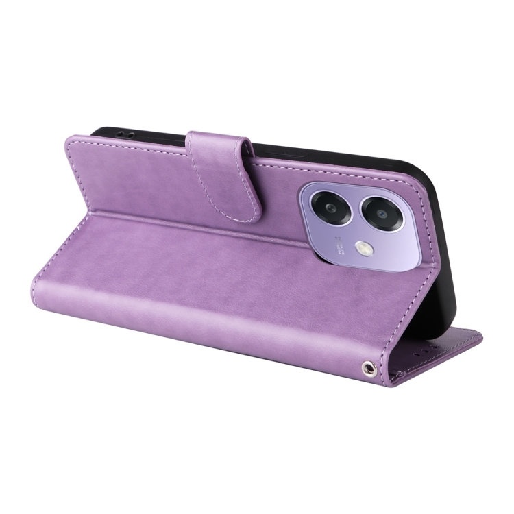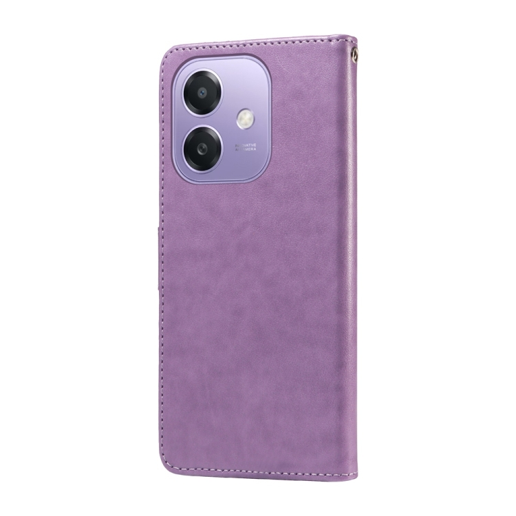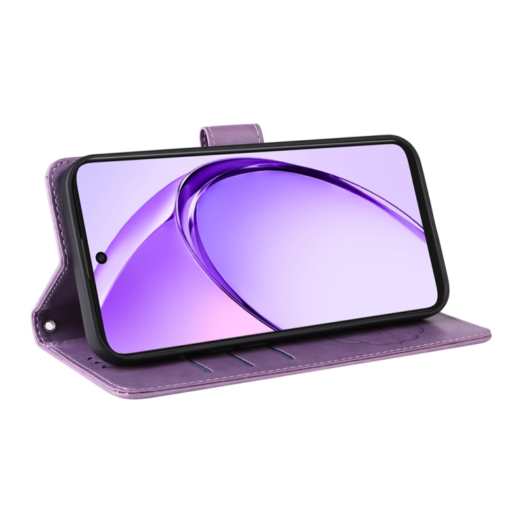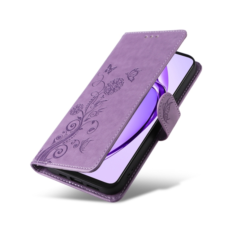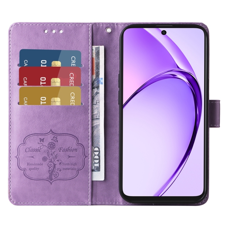 Funda de Cuero con Diseño de Mariposas y Flores En Relieve para Oppo A3X 4G/A3X 5G (Morado)