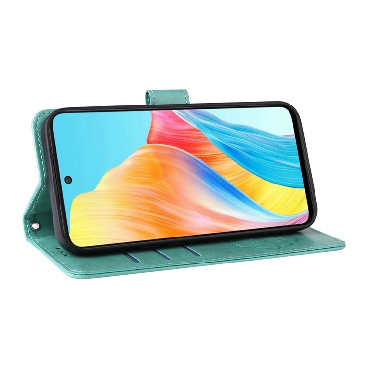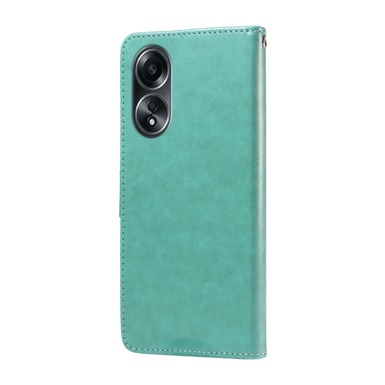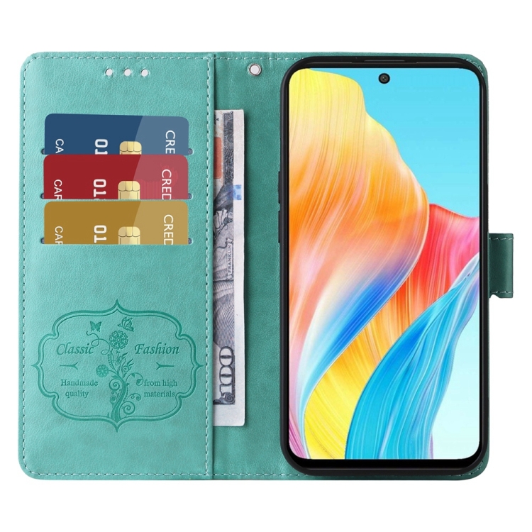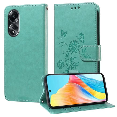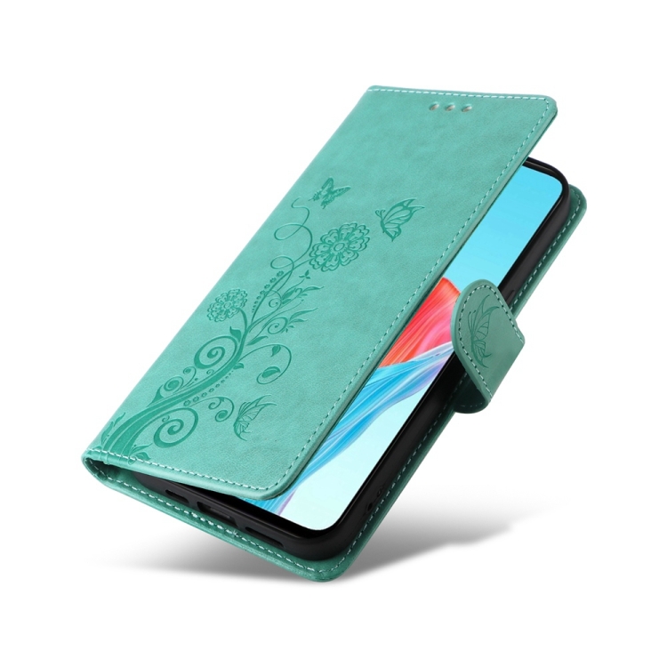 Funda de Cuero con Diseño de Mariposas y Flores En Relieve para Oppo A58 4G (Verde)