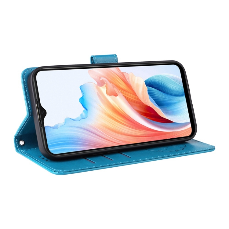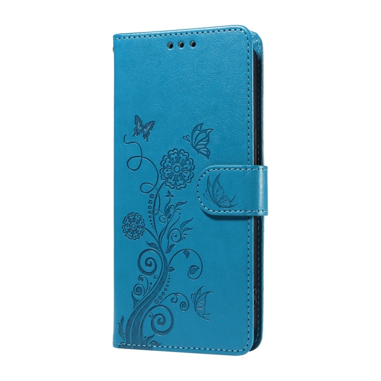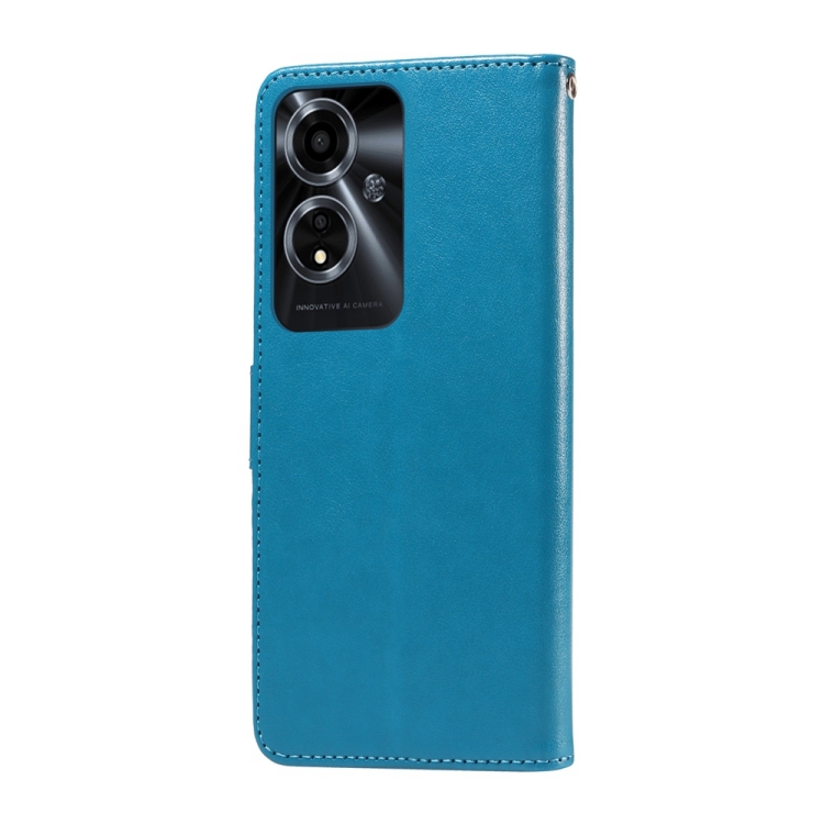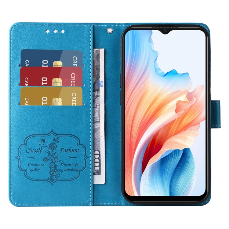 Funda de Cuero con Diseño de Mariposas y Flores En Relieve para Oppo A59 5G (Azul)
