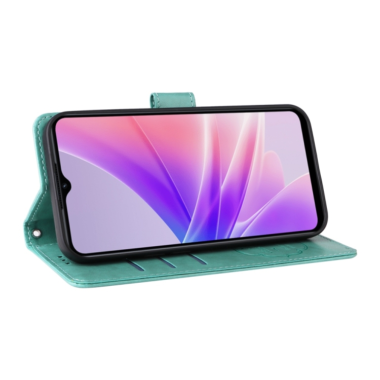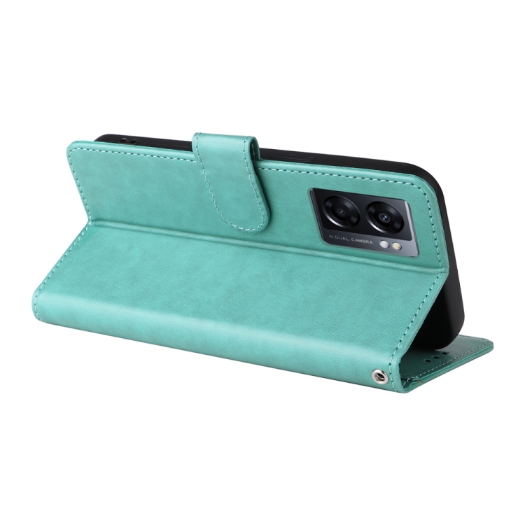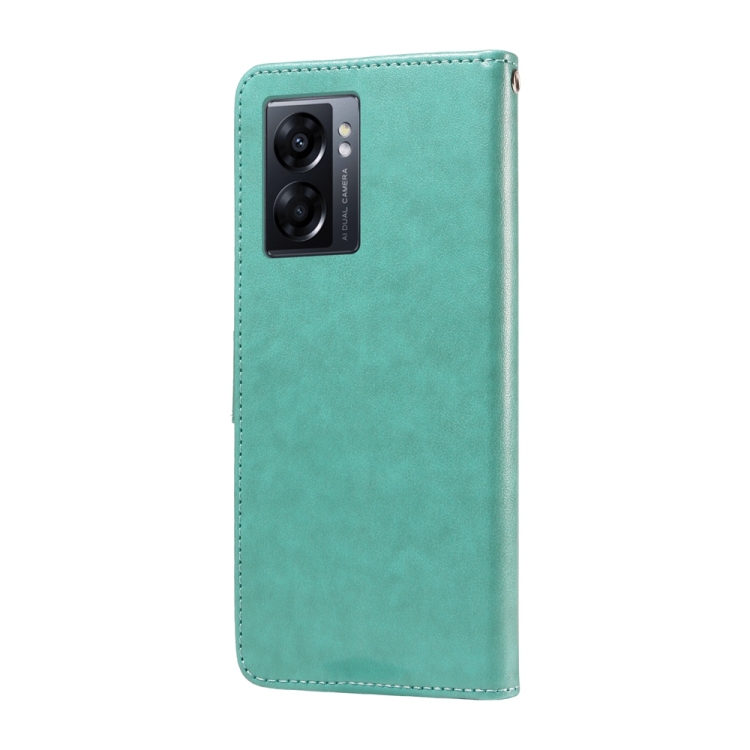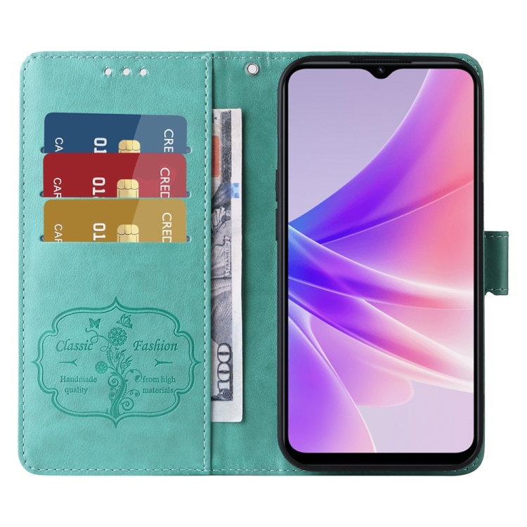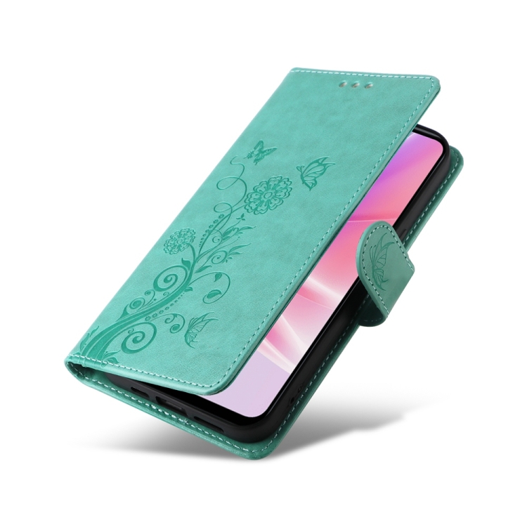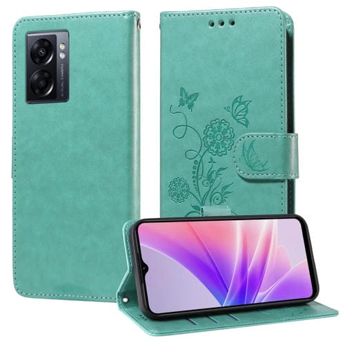 Funda de Cuero con Diseño de Mariposas y Flores En Relieve para Oppo A77 4G/5G/A77S 4G (Verde)