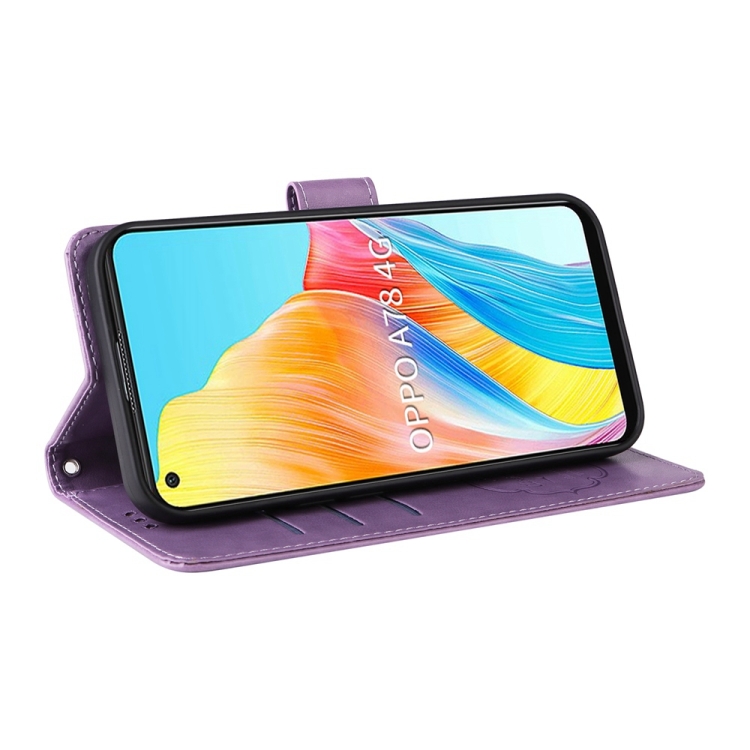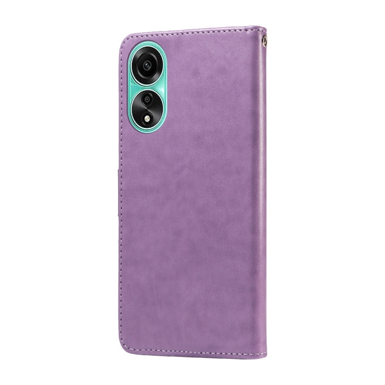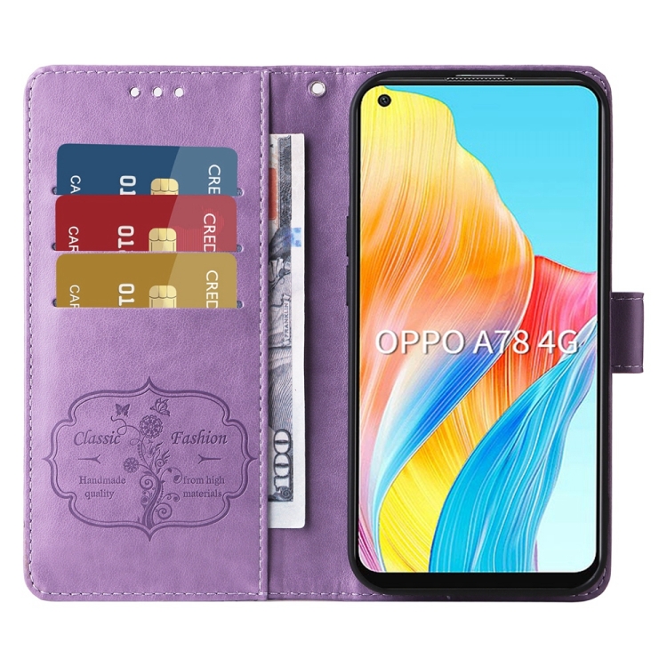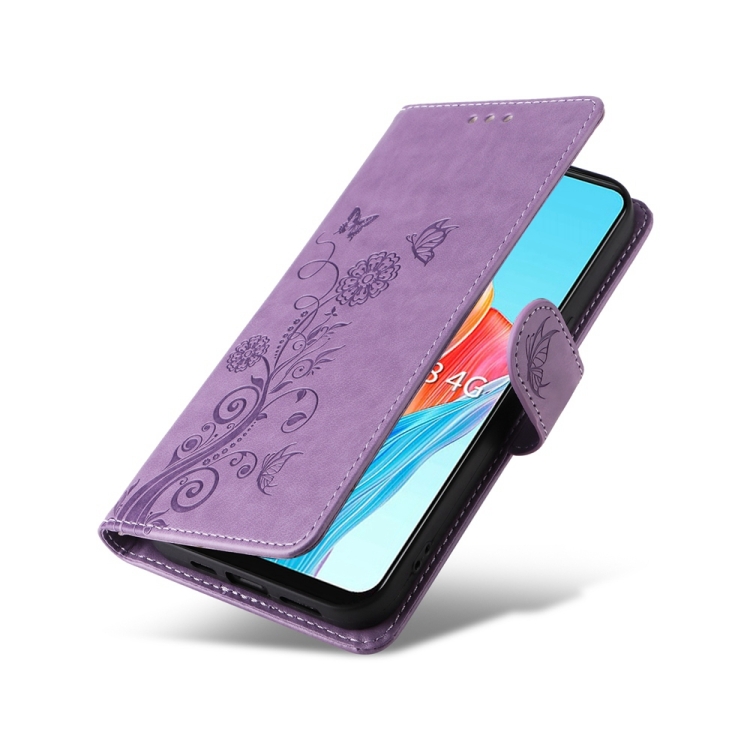Funda de Cuero con Diseño de Mariposas y Flores En Relieve para Oppo A78 4G (Morado)