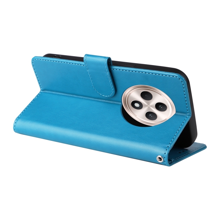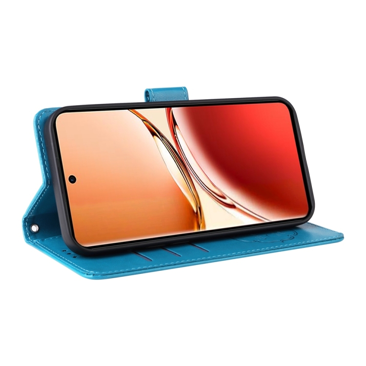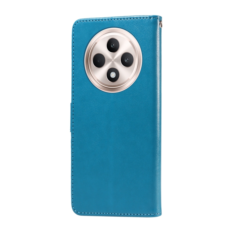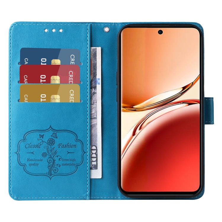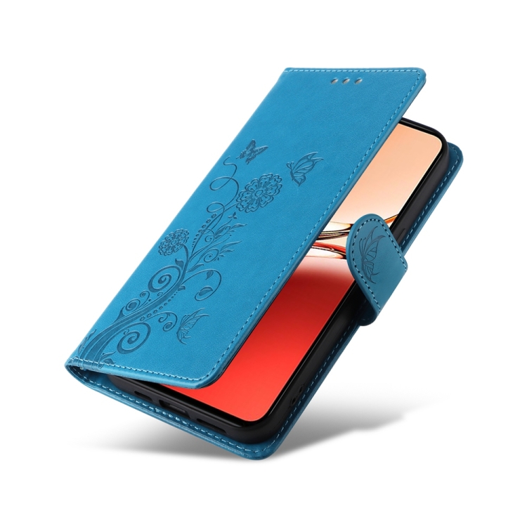 Funda de Cuero con Diseño de Mariposas y Flores En Relieve para Oppo Reno12 F 5G (Azul)