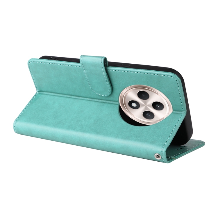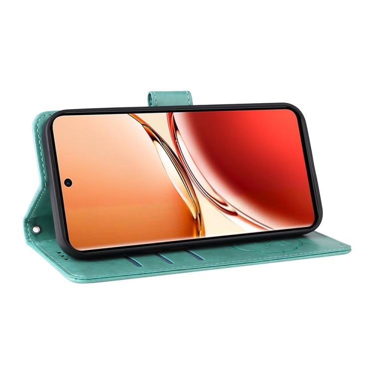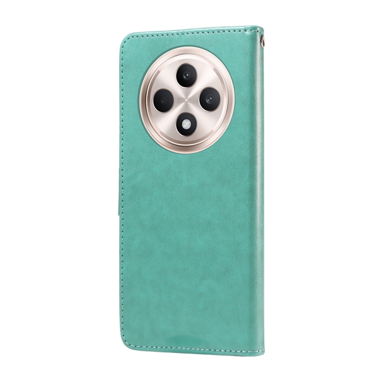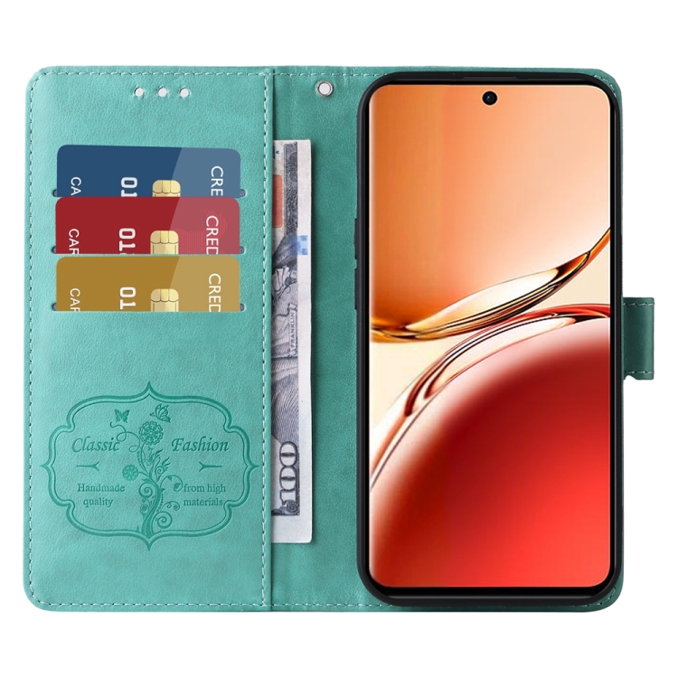 Funda de Cuero con Diseño de Mariposas y Flores En Relieve para Oppo Reno12 F 5G (Verde)