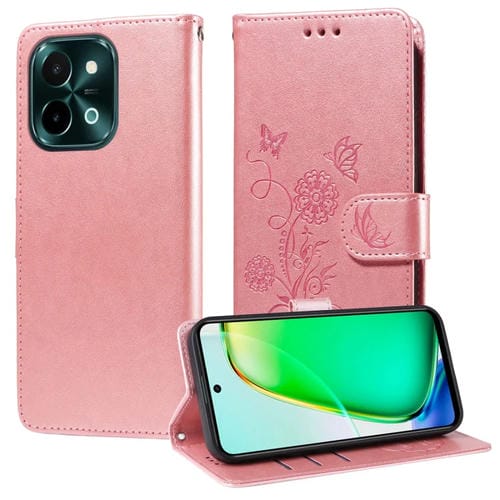 Funda de Cuero con Diseño de Mariposas y Flores En Relieve para Vivo Y28 4G (Oro Rosa)